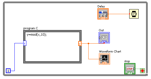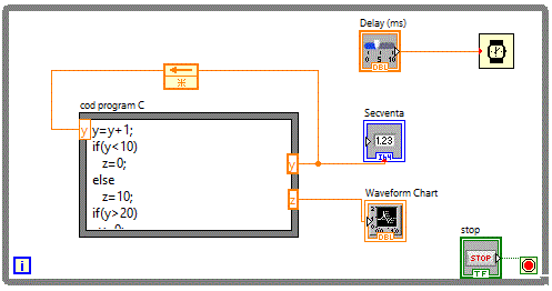 includerea de cod C in diagrame bloc. Acest lucru este posibil utilizand functia:Functions => Programming => Formula Node.