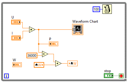Pentru a afisa energia in W-ora, tinand cont ca masurarea puterii se realizeaza la intervale de 100 ms,