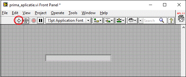 Vom reveni in fereastra Front Panel si vom apasa butonul incercuit mai jos pentru a rula aplicatia: