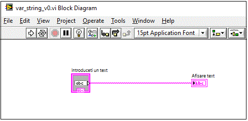 corespunzator indicatorului plasat pe Front Panel. Cu click dreapta pe Block Diagram aleg String apoi String Constant,