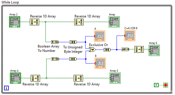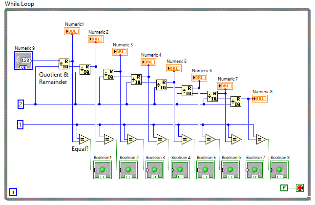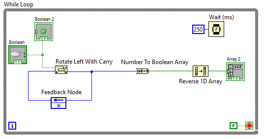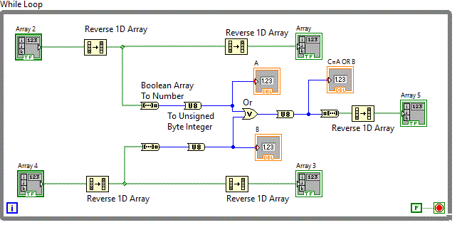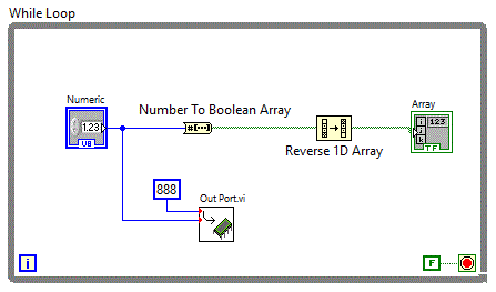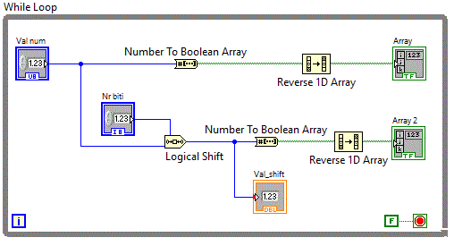 Pentru shift-are stanga s-a folosit functia Programming => Numeric => Data Manipulation => Logical Shift
