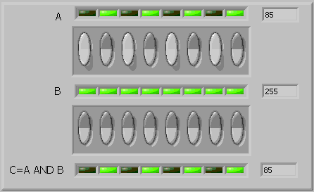 intreg fara semn pe 8 biti. Functia AND este folosita deseori pentru validarea anumitor biti. Se construieste o masca de biti (operandul B) si se seteaza cu 1