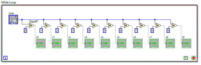 care avand un control numeric si un control boolean de tip led, sa activam ledul cand controlul numeric selecteaza un numar 7.