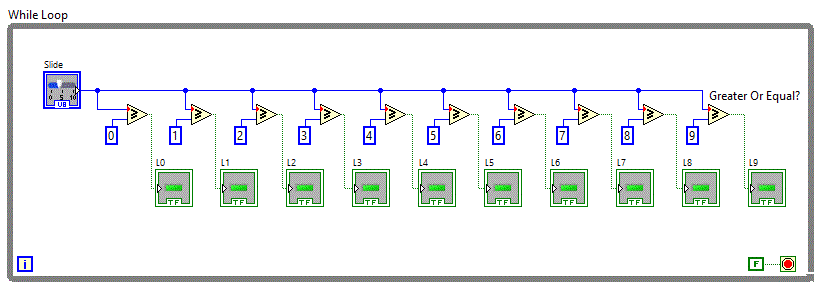 In diagrama bloc vor fi folosite desigur 10 operatori relationali de tipul "Greater Or Equal"