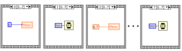 afisam secvential trei valori pe un indicator de tip "Meter" la intervale de 500 ms.