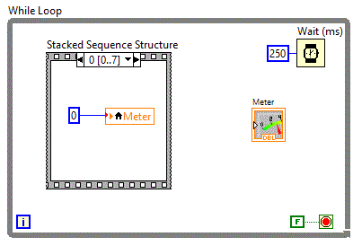 Pe Block Diagram-ul vom plasa o structura secventiala de tipul: Stacked Sequence Structure in care vom