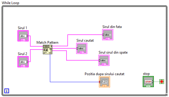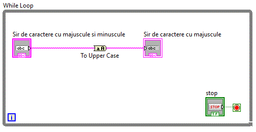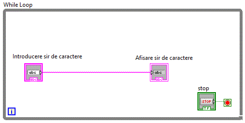 Block Diagram-ul corespunzator Front Panel-ului creat. Pe Block Diagram va exista deja un Terminal de tip string