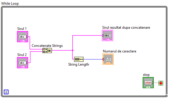 Tipul de date String este des utilizat in aplicatiile LabVIEW atat pentru a afisa diverse mesaje pe
