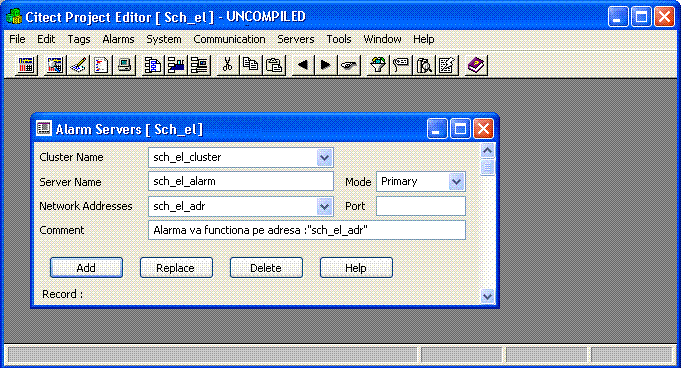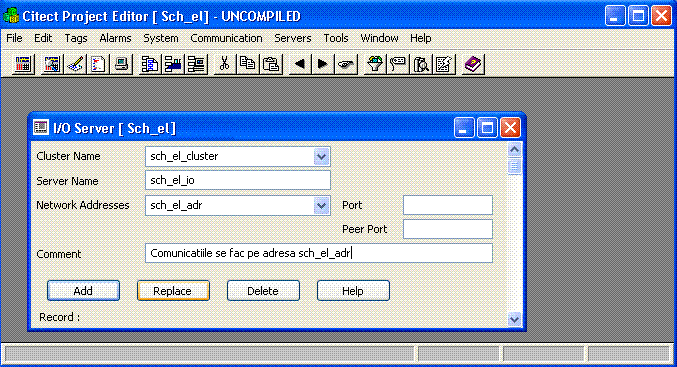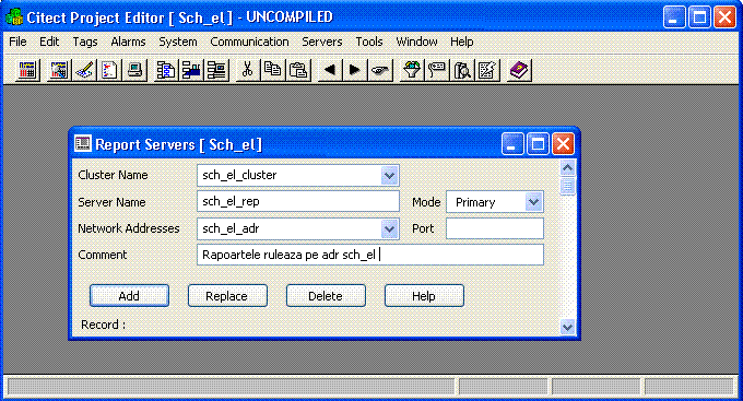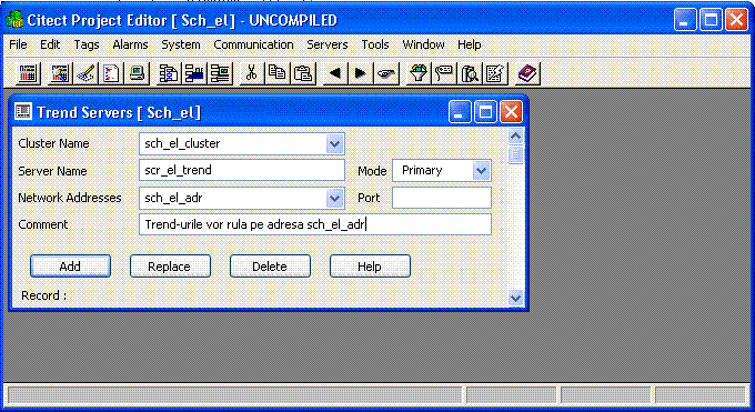 | Server SCADA | Serverul SCADA este subansamblul unui sistem SCADA responsabil pentru toate datele culese din proces (realizeaza si baza de date, asigura comunicatia cu PLC-urile din proces) |