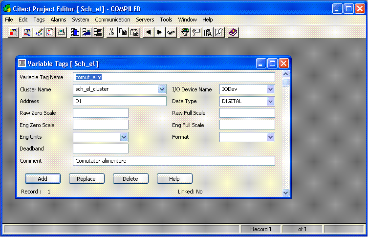 | Tag | Nume generic pentru elementele din procesul monitorizat codificate prin intermediul variabilelor |