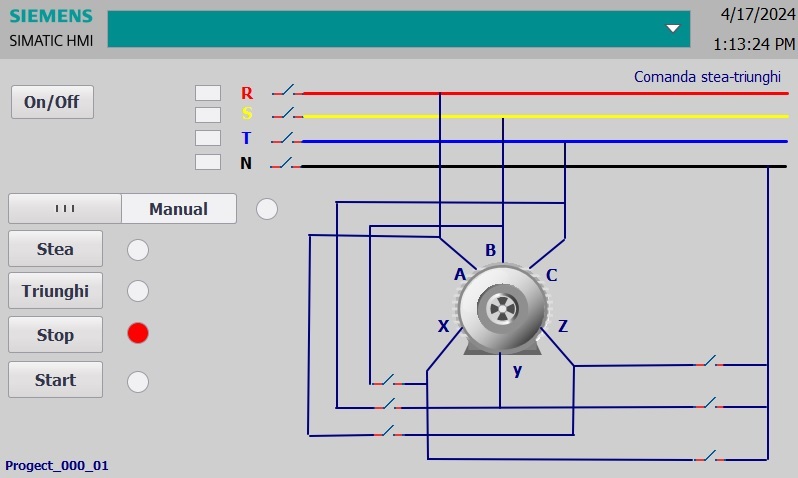 In regim manual sa permita pornirea in conexiune stea prin apasarea butonului Stea dupa care sa permita trecerea la conexiunea triunghi prin apasarea