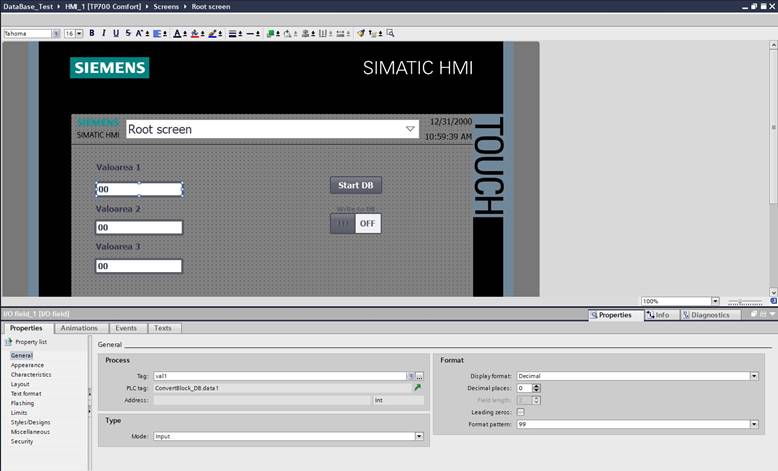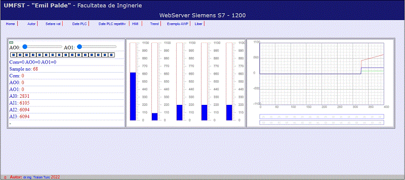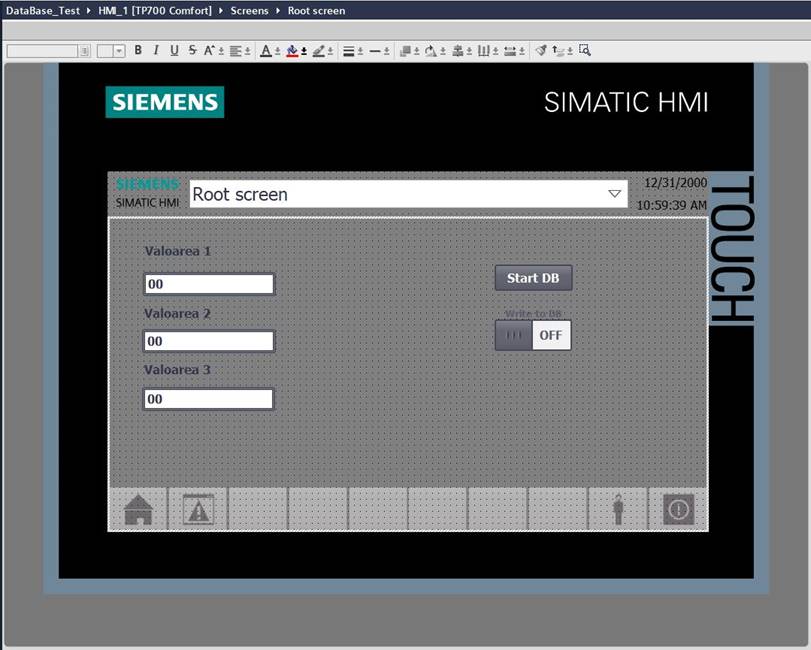 11. Se incarca programul creat in PLC si in HMI si se testeaza astfel: se apasa butonul “Start DB” > se inscriu valorile dorite > se comuta switch-ul in pozitia ON > se cauta inregistrarile in baza de date.