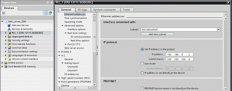 Se va realiza in continuare conectarea PLC-ului Siemens S7-1200