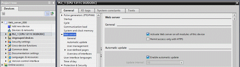 Configurarea PLC-ului: