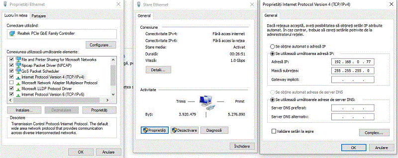 se configureaza adresa IP si se seteaza portul