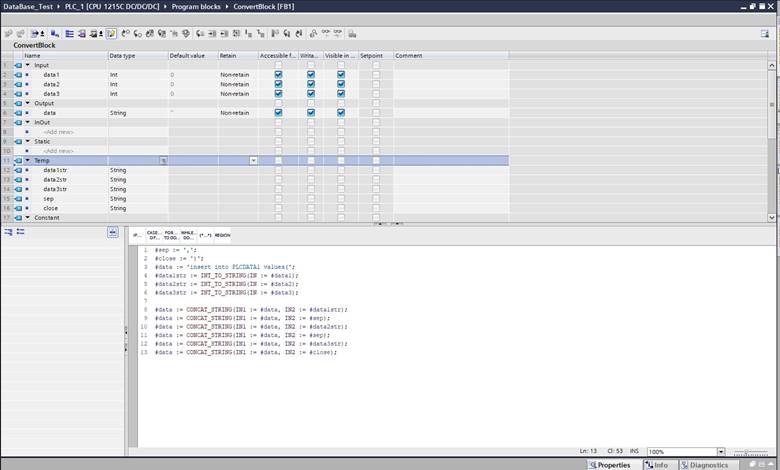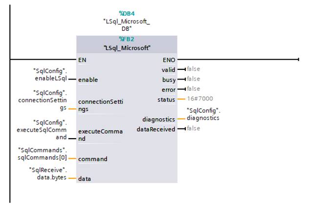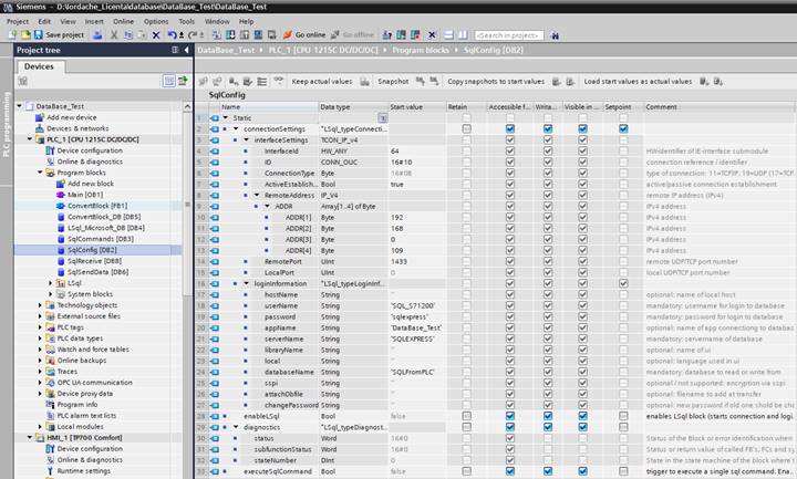 a realiza conectarea s-a utilizat libraria LSql, care poate fi descarcata de la adresa: https://support.industry.siemens.com/cs/document/109779336/connecting-a-s7-1200-s7-1500-to-a-sql-database-?dti=0&lc=en-WW