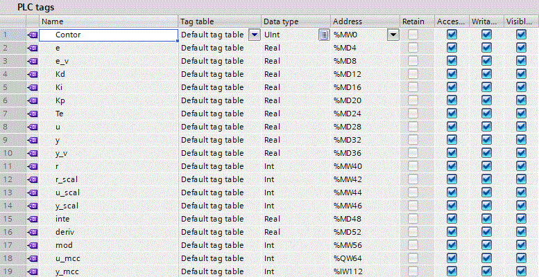 "mod" := 0; "Contor" := 0; "Kp" := 0.1; "Ki":= 1.8; "Kd":= 0.01; "r":= 300; "r_scal" := 0; "e" := 0; "e_v" := 0; "y" := 0; "y_v" := 0; "r" := 400; "y_scal" := 0; "inte":= 0; "deriv":= 0; "u":= 0; "u_scal":= 0; "Te" := 0.1; |