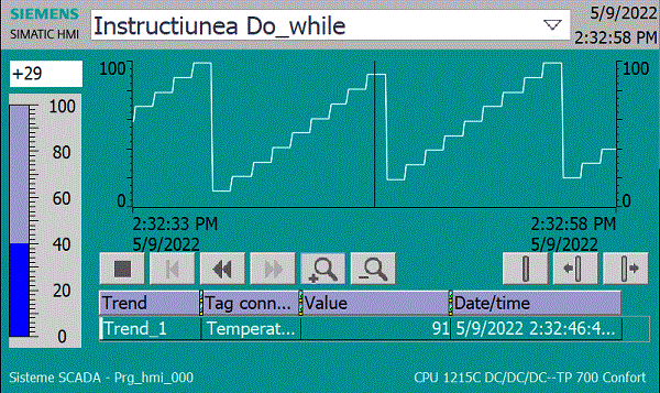 Sub Incr_temp() Dim v_s Contor=0 v_s=Second(Now()) Do While Contor < 10 If v_s <> Second(Now()) Then Contor=Contor+1 Temperatura=Temperatura+10 If Temperatura>100 Then Temperatura=50*Rnd() End If v_s=Second(Now()) End If Loop End Sub |