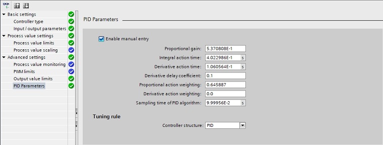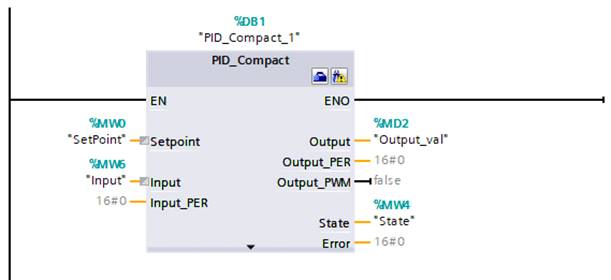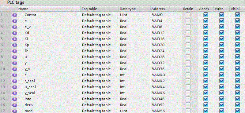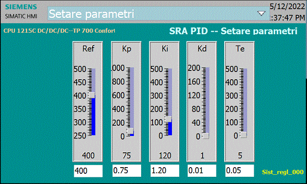 "mod" := 0; "Contor" := 0; "Kp" := 0.75; "Ki":= 1.2; "Kd":= 0.01; "r":= 400; "r_scal" := 0; "e" := 0; "e_v" := 0; "y" := 0; "y_v" := 0; "r" := 400; "y_scal" := 0; "inte":= 0; "deriv":= 0; "u":= 0; "u_scal":= 0; |