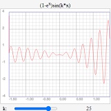 De exemplu pentru functia (1-ex)*sin(k*x) unde k=30 si x apartine intervalului [-1.5 +1.5]