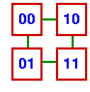 Daca luam un hypercub de ordinul 2 cu 22=4 procesoare: