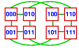 si le conectam cu un alt cu un alt hypercub de ordinul 2 astfel incitit un cub sa aiba o legatura cu legatura corespunzatoare intr-un alt cub: