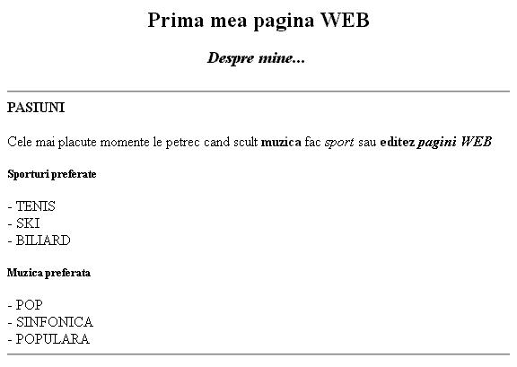 -Paginile prebuie sa contina diverse elemente HTML( elemente pentru formatarea textului, liste, tabele, imagini, link-uri, etc.),