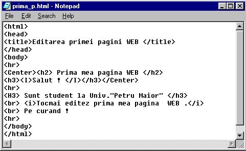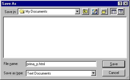 - Se salveaza ca si Text Documents (ANSI) cu numele prima_p.html in contul d-voastra