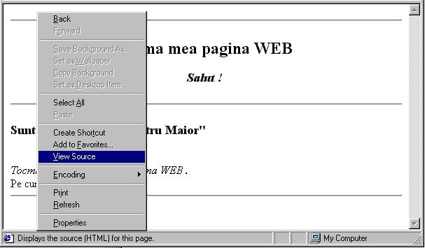 Cu "click dreapta" in pagina afisata, cu optiunea View Source se poate vedea sau edita sursa paginii