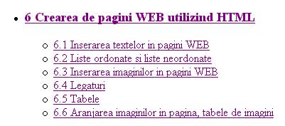 -Realizati in pagina start.html legaturi interne spre capitolele mai sus amintite: