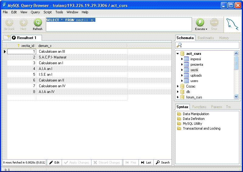 // Citire date din baza de date