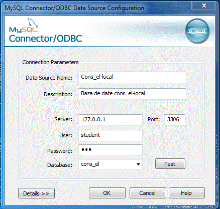 static String myConnString = "driver={MySQL ODBC 5.1 Driver};server=127.0.0.1;database=cons_el;uid=student;pwd=psw;"; //local