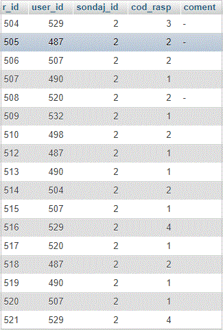 $query = "SELECT sondaj.intrebare, v_id, cod_rasp, v_rasp FROM sondaj, v_sondaj WHERE sondaj.sondaj_id=v_sondaj.sondaj_id AND v_sondaj.sondaj_id=$id"; |